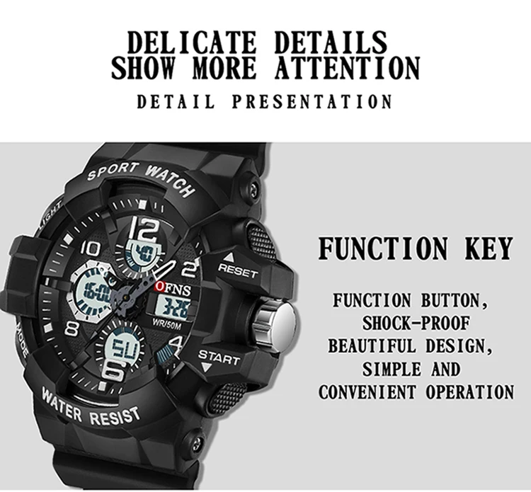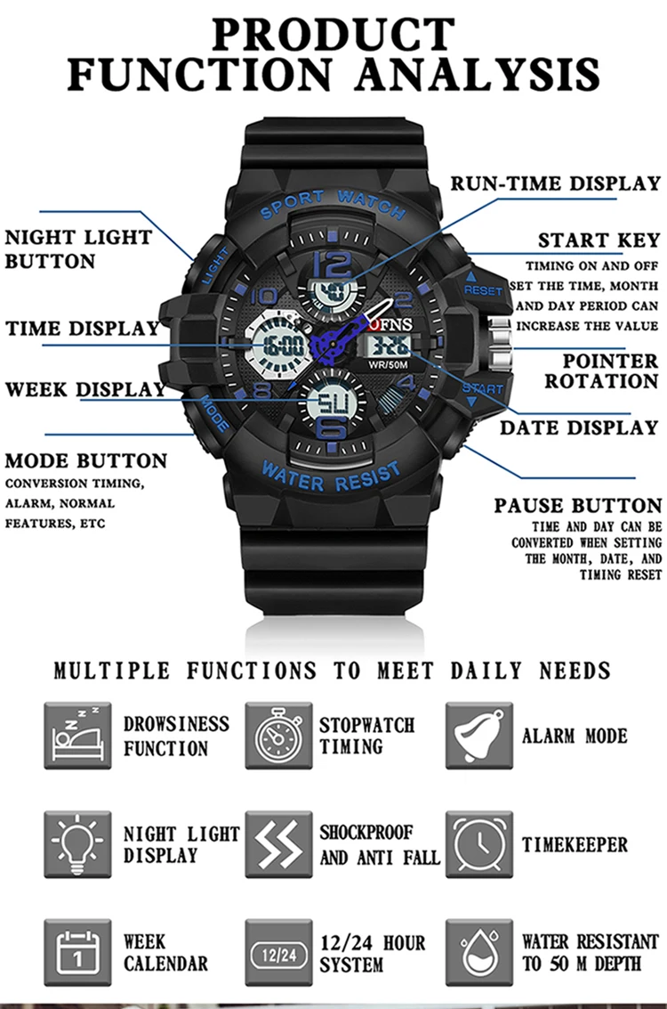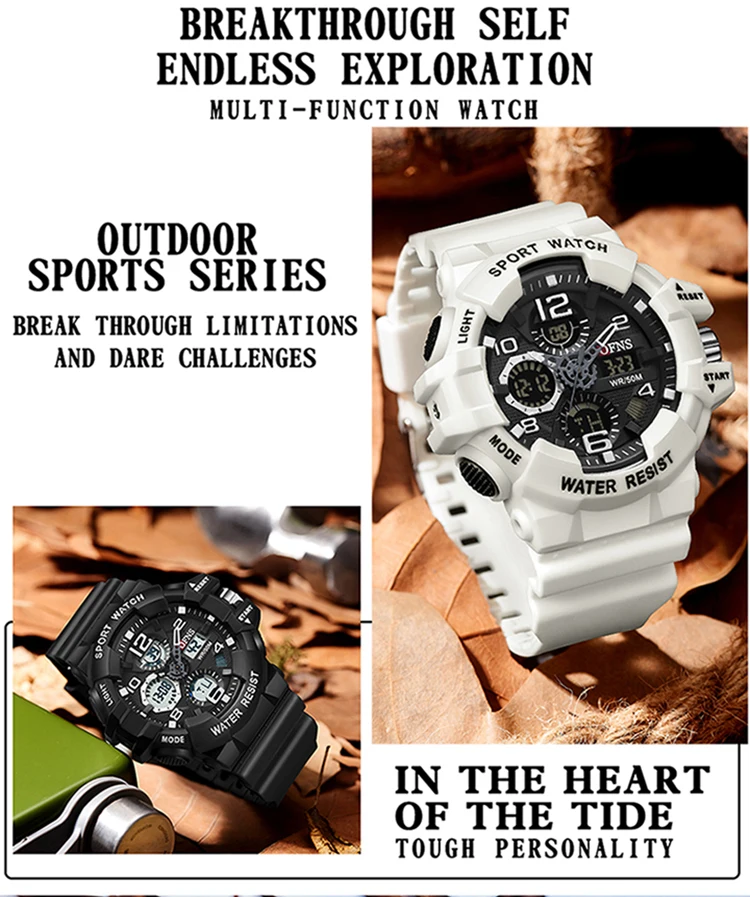 Men Outdoor Sport Watch Shockproof Waterproof LED Analog Digital Multifunction Big Dial Electronic Wristwatch G style Male Clock